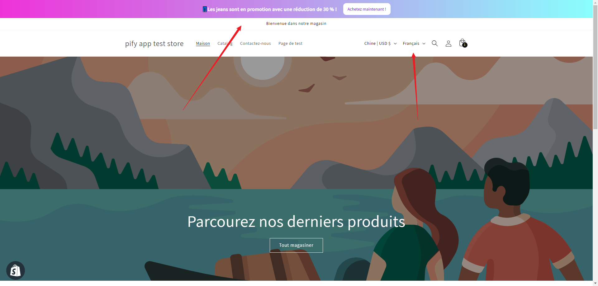 Once the setup is completed, when your store switches to French, it will display a French bar. If your store has other languages, you simply need to continue adding them.